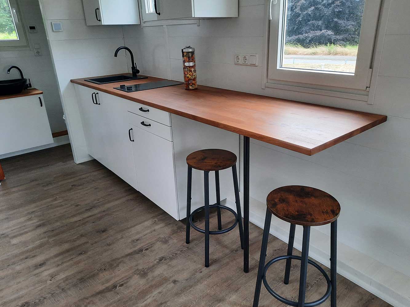 Die Gestaltung und Ausstattung des Tiny Houses erfolgt ganz nach Ihren Vorstellungen. Materialien, Farbgebung und Platzierung von Möbeln und Stauraum wird detailliert mit Ihnen abgestimmt.
